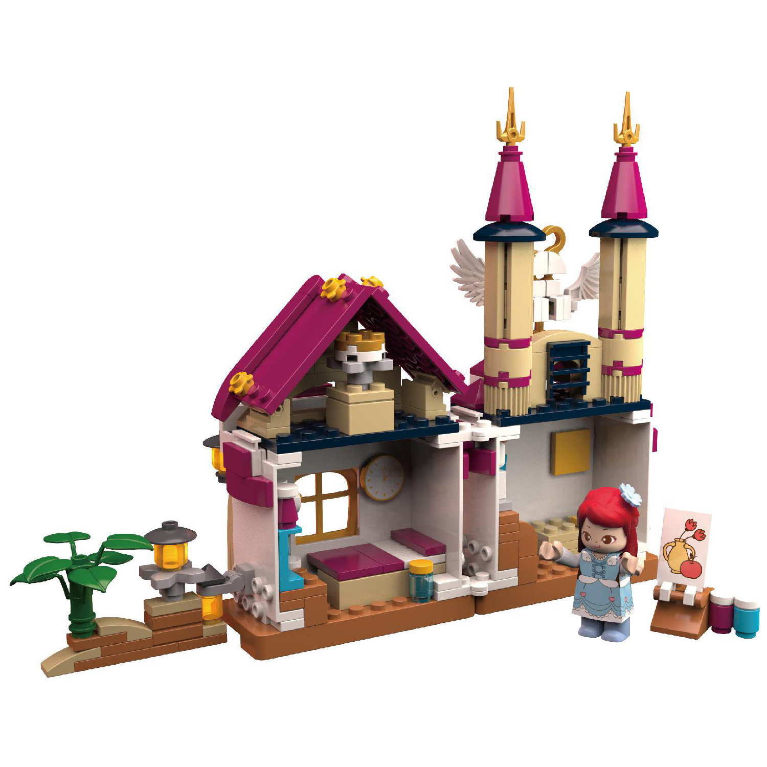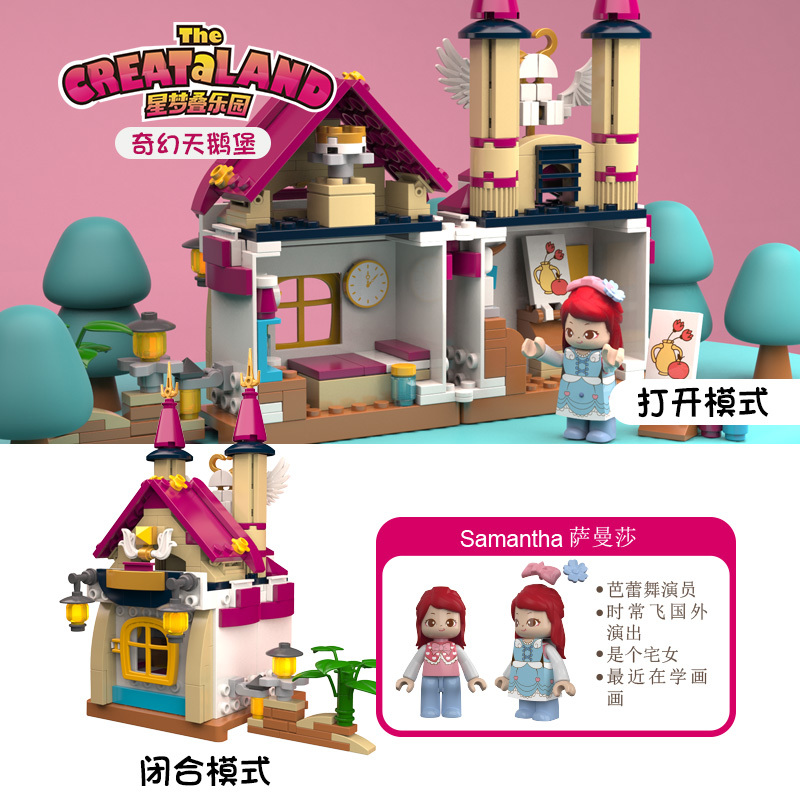 有一個地方,讓大人們欣欣向往,讓孩子們感受童話世界的純真與美好,它就是著名的天鵝堡。天鵝堡不僅有睡美人的美麗傳說,世界上有許多的童話故事更是圍繞它而編寫。我們希望把這樣一個奇幻的地方介紹給孩子們,讓孩子們用自己的雙手拼搭一個屬于他們自己的童話樂園。紫色的屋頂,金碧輝煌的房間,屋頂上,門檐上,隨處可見的天鵝形象元素,城堡里的小公主完成了今天的畫作,又一個充滿奇幻的童話故事誕生了……