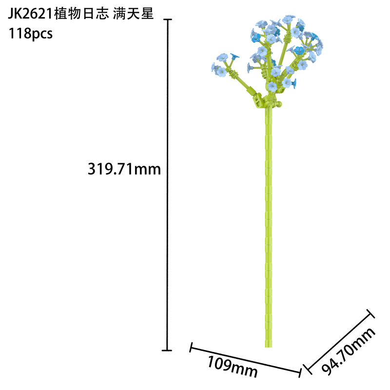 佳奇仿真積木花,匠心打造,細節滿滿還原花束原貌。九朵積木花,九種各具氣質的美麗。郁金香明媚、木棉熱烈、鈴蘭清麗、康乃馨溫柔、玫瑰嬌艷、薔薇爛漫、勿忘我柔情、茉莉花純潔、滿天星俏皮。